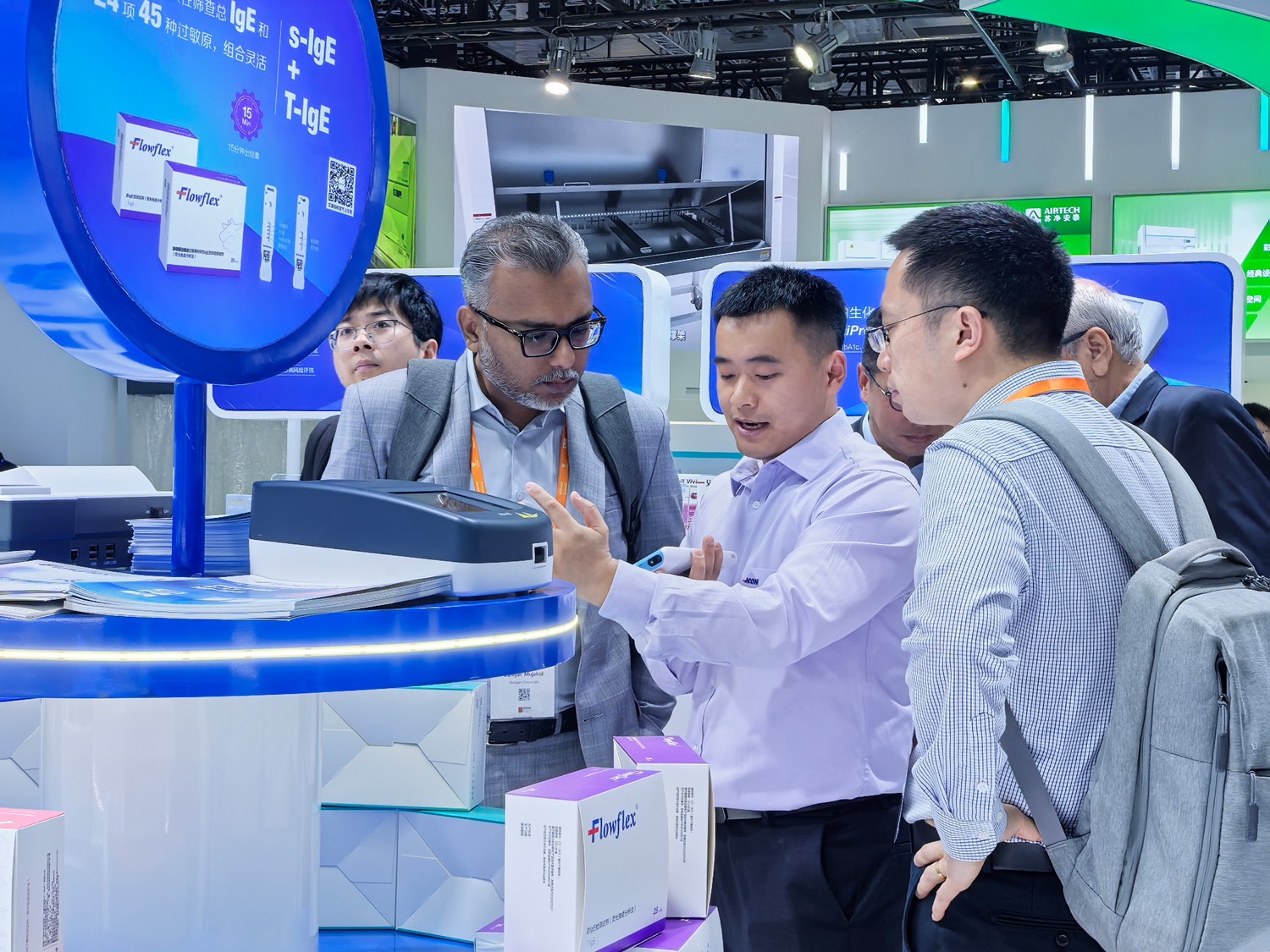 展館內(nèi)人流如織,在7.1號(hào)館核心展艾康生物以“技術(shù)普惠”為炬,點(diǎn)亮2025CMEF的舞臺(tái)。其中,快診和生化兩大技術(shù)平臺(tái)更是成為關(guān)注焦點(diǎn)。
