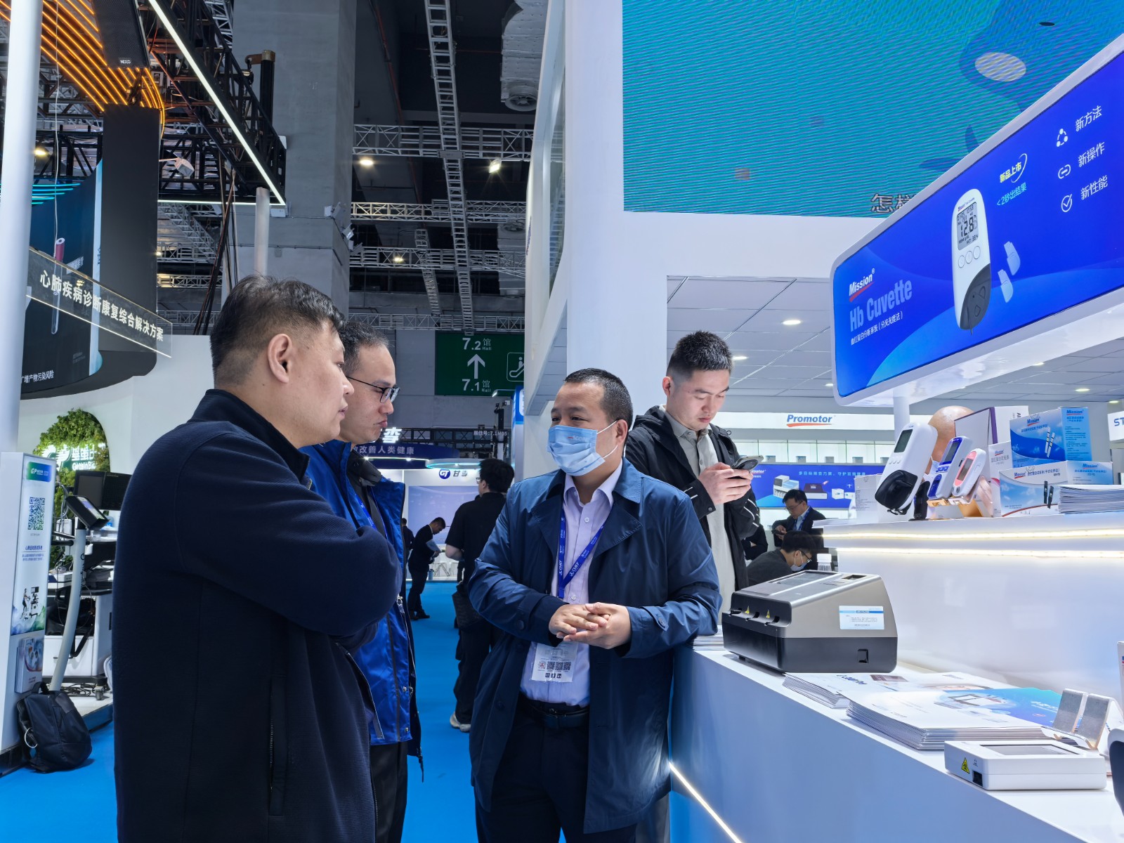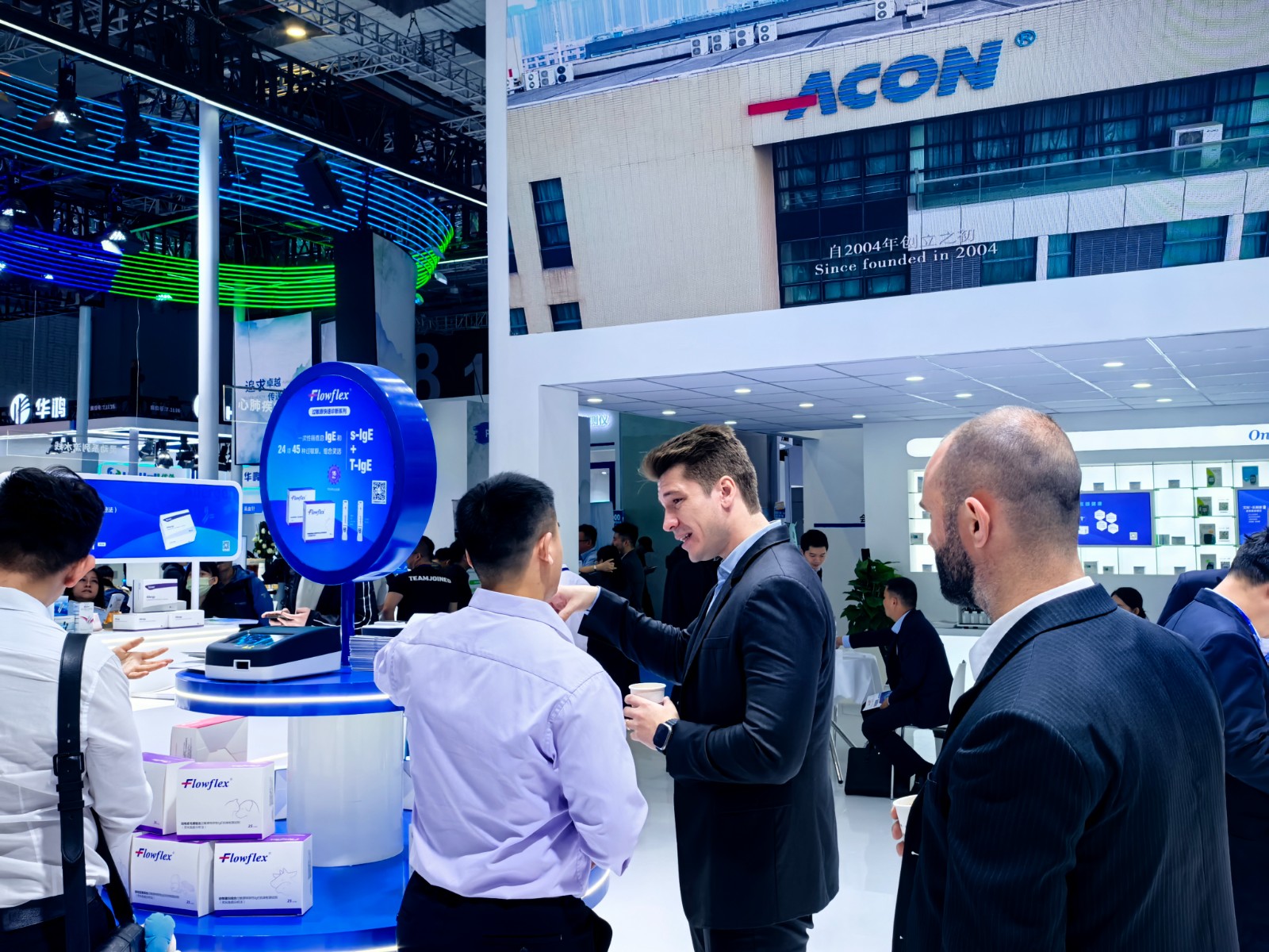 展館內(nèi)人流如織,在7.1號(hào)館核心展艾康生物以“技術(shù)普惠”為炬,點(diǎn)亮2025CMEF的舞臺(tái)。其中,快診和生化兩大技術(shù)平臺(tái)更是成為關(guān)注焦點(diǎn)。